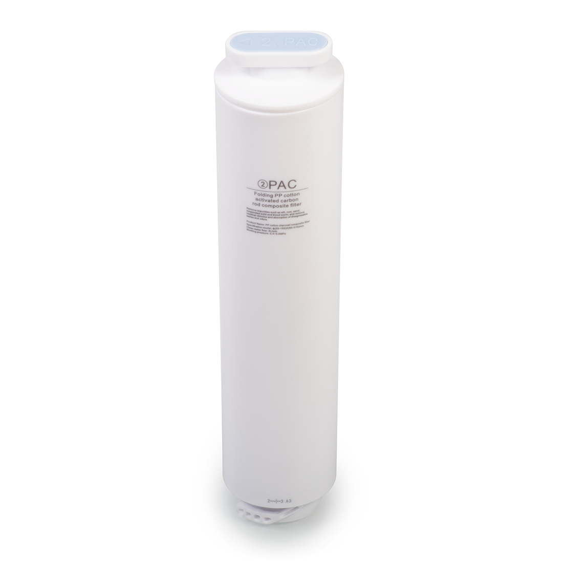 Wkład filtracyjny PAC odpowiada za usuwanie z wody dużych cząsteczek oraz zanieczyszczeń takich jak: koloidy, rdza, piasek. Poprawia także zapach i barwę wody. Zalecana częstotliwość wymiany: od 6 do 12 miesięcy.